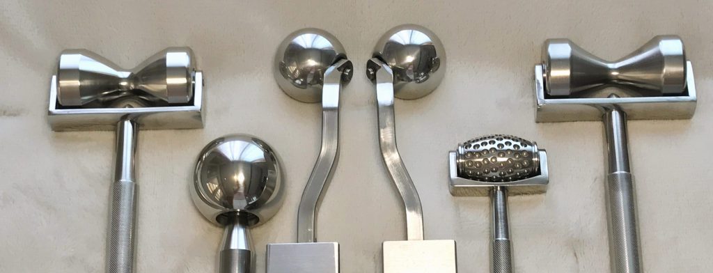 <療具例> 筋群や関節、脊柱など、処置部位や症状に合わせて各種転子を使用します。また、安全に処置するための専用の処置台も備えております。